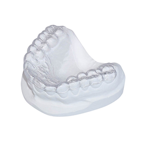 Hard-elastic thermoforming material, styrolbutadienstyrol (SBS), for the fabrication of hard mid-layers for sports mouth guards.