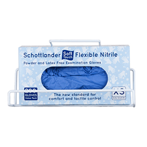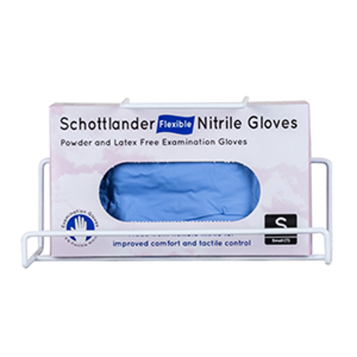 Schottlander wall-mounted glove dispensers are hospital grade, made of nylon coated wire and can be disinfected by all commonly used surgery cleaning products. They allow surgeries to wall mount their glove boxes in compliance with HTM 01-05.