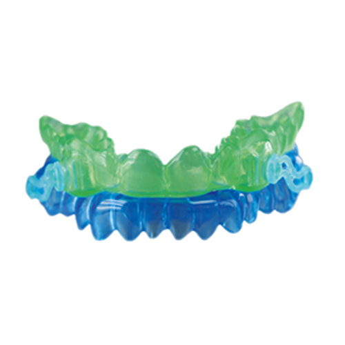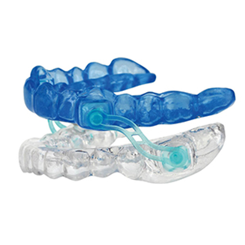 The Silensor-sl consists of one splint for the upper jaw and one splint for the lower jaw. The lower jaw is either held in a predetermined or advanced position by two connectors that are fixed laterally to the splint.